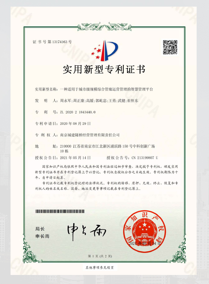 目前公司设有南京市工程技术研究中心和与南京邮电大学共同设立的江苏省研究生工作站,同时公司还与东南大学、南京邮电大学、南京工业大学、南京理工大学形成产学研结合。经过多年的技术研究开发,公司借助于物联网、互联网、人工智能、大数据分析等技术,成功完成城市基础设施智慧运营管理平台和项目智能管理平台的开发。目前已申请知识产权52件,其中授权发明专利3件,实用新型专利6件,成功登记软件著作权34件,申请受理发明专利8件,实用新型专利3件。近三年研发15个项科技成果转化52项。得到了政府相关部门的认可,实现了公司监管系统与大数据局、交管、交通、城建、公安、消防、水利等政府职能部门数据共享、互联互通,大大提升了南京市智慧城市整体管理水平。